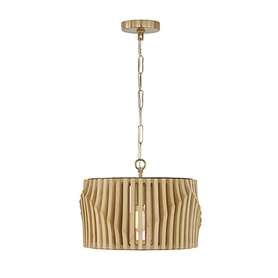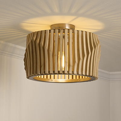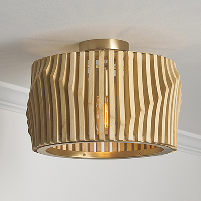 - • DETAILS: The carved slats of mango wood create an organic wave, complete with a touch of shine from the Brass finish. Artisan made and handcrafted; natural variation will occur. Can be hung as a pendant or semi-flush.