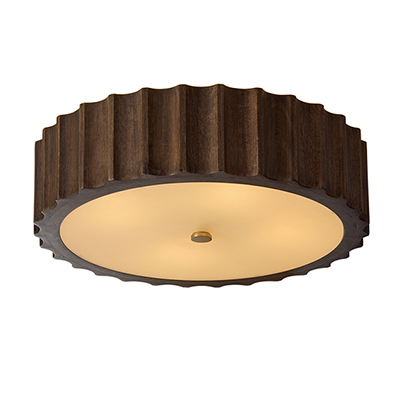 Carved by hand, the dramatic fluted drum creates textural appeal in the Cody Semi-Flush. The White acrylic diffuser brings a polished look and pairs gorgeously with the dark stained mango wood, while the Matte Brass finish adds a touch of shine to the large-scale silhouette.