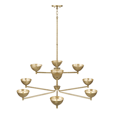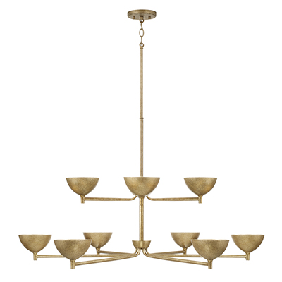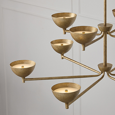 Sophisticated in silhouette and shine, the Francesca Two-Tier Large Chandelier brings high design and integrated LED technology. Soft curves form unique designer domes, while the handcrafted Feathered Brass finish creates a luscious visual and tactile texture that beautifully catches the light from all angles.