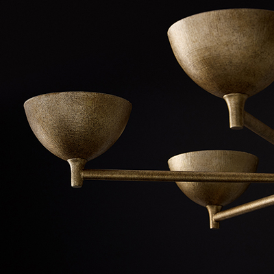 - • FINISH: A honey-gold brass with champagne highlights, amber low lights, and black undertones in a feathered visual texture, with handcrafted cross-hatched brushed texture on the shades.