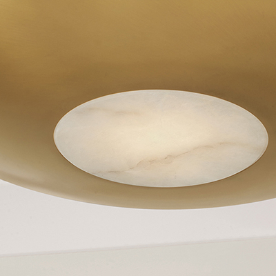 - • DETAILS: Combining modern design with the warm Aged Brass finish, the tiered dome silhouette is complete with a real Alabaster diffuser for a naturally beautiful illumination.