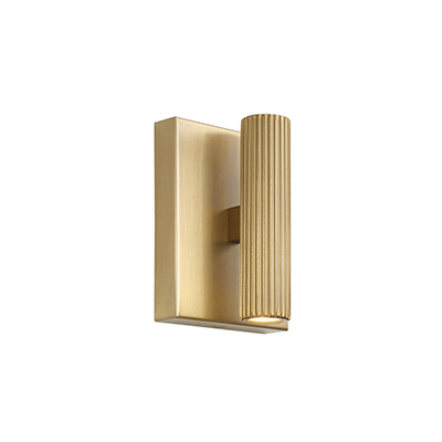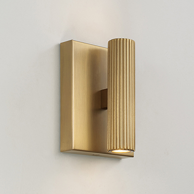 - • DETAILS: The fine, fluted texture brings dimension to the sleek, cylindrical form, complete with a full backplate and integrated LED technology for beautiful, functional task lighting in an Aged Brass finish.