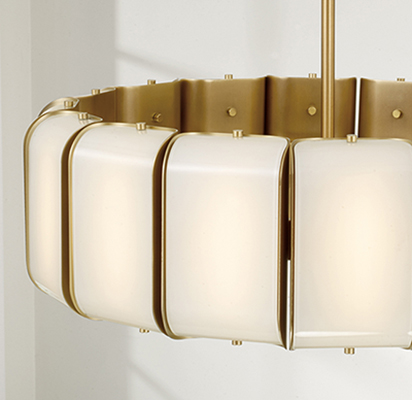 - • DETAILS: Grounded by Aged Brass details, the curved glass panels create a beautiful multifaceted glow from the chic drum silhouette.