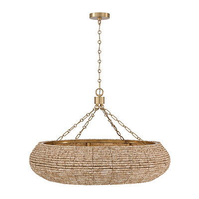 - • FINISH: A combination finish of handcrafted wooden beads painted in varying shades of tan and beige, and a honey-toned gold with subtle shine.