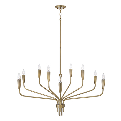 The Palmer Large Chandelier is all about finesse. The rich, Antiqued Brass finish adds a layer of complexity, while the softly faceted candle sleeves reflect the light at different angles, creating subtle dimension and intrigue. The gathered finial brings striking style to beautifully complete the design.