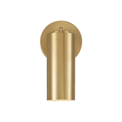 Smooth, cylindrical forms create the Robbie Sconce. Finished in Aged Brass, this contemporary luminaire showcases a touch of contrast with an interior White finish. The can light pivots to direct the illumination, bringing modern versatility to beautiful task lighting.