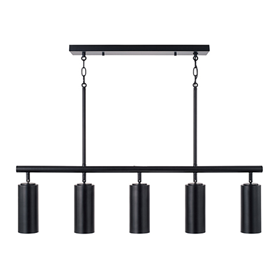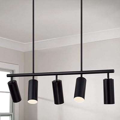 Smooth, cylindrical forms create the Robbie Linear Chandelier. Finished in Matte Black, this contemporary luminaire showcases a touch of contrast with an interior White finish. Each can light pivots to direct the illumination, bringing modern versatility to beautiful task lighting.