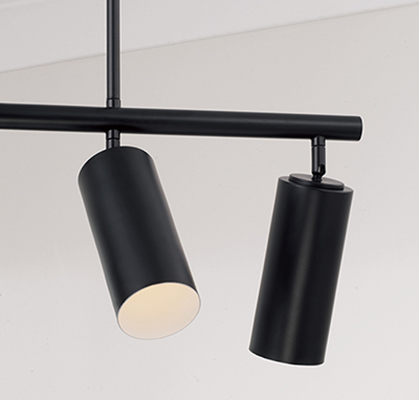 - • DETAILS: The cylindrical, pivoting can lights create a contemporary feel in the Matte Black finish, complete with a the contrasting White finish on the inside.