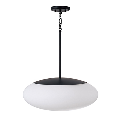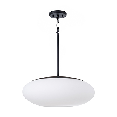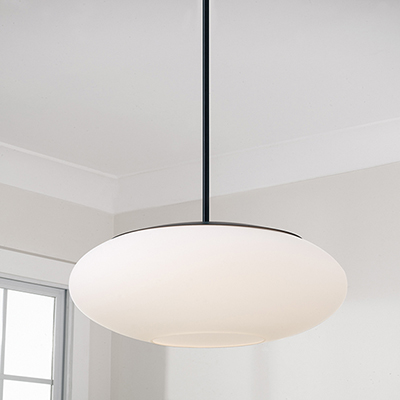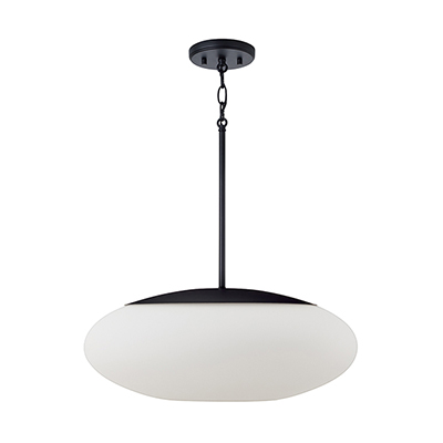 Create a serene aesthetic with the Soren Pendant. The Soft White glass oval illuminates a harmonious, ambient glow, while the Matte Black finish perfectly punctuates the crisp lines and sleek details. Open on the bottom for easy lightbulb swaps.