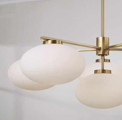 Create a serene aesthetic with the Soren Large Chandelier. Appearing almost weightless, the Soft White glass ovals illuminate a harmonious, ambient glow. The Aged Brass finish perfectly punctuate each piece with crisp lines and sleek details.