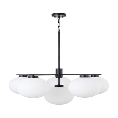 Create a serene aesthetic with the Soren Large Chandelier. Appearing almost weightless, the Soft White glass ovals illuminate a harmonious, ambient glow. The Matte Black finish perfectly punctuates the crisp lines and sleek details.