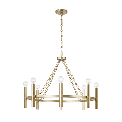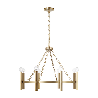 - • DETAILS: Finished in Matte Brass, the extended candle sleeves and unique designer chain details create high style in a classic ring silhouette.
